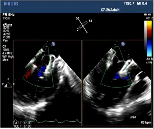 瓣膜释放后,TEE显示反流消失